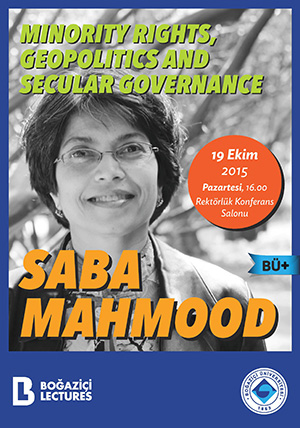 Saba Mahmood whose special interests include religion, secularism, law and politics, gender and sexuality, Islam, Middle East and Europe, is one of the leading academic scholars of social and cultural anthropology. Her work focuses on the interchange between religious and secular politics in postcolonial societies emphasizing on the issues of embodiment, cultural hermeneutics, law and gender/sexuality and raises challenging questions about the relationship between ethics and politics, freedom and captivity, religion and secularism, agency and submission.Boğaziçi University has been inviting notable scholars from around the world to participate in Boğaziçi Lectures Series since 2013. The University will host Prof. Saba Mahmood on Monday October 19th 2015. The title of the lecture is “Minority Rights, Geopolitics and Secular Governance”.