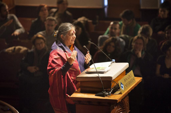 In her closing remarks, Shiva wished for a world without segregation and separation for all humanity and a peaceful world which is whole again with its land, culture and people living in harmony which is only possible via resistance to corporate exploitation through a shift to earth-centered politics and economics.