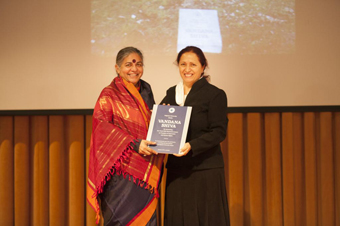 At the beginning of her speech titled “Making Peace with the Earth and with Each other”, Shiva recalled the assasination of Mahatma Gandhi, the leader of the Indian Independence Movement in British-ruled India whose nonviolent political identity inspired movements for civil rights and freedom across the world. “January is a month we lost those who were fighting for peace and freedom” said Shiva pointing out that like Hrant Dink, Gandhi was also trying to build bridges for peace “ Both Hrant and Gandhi argued that people from different religions and races are not enemies and that humanity should be a “whole” concept and should not be considered any different than the other evolutionary living beings on earth.