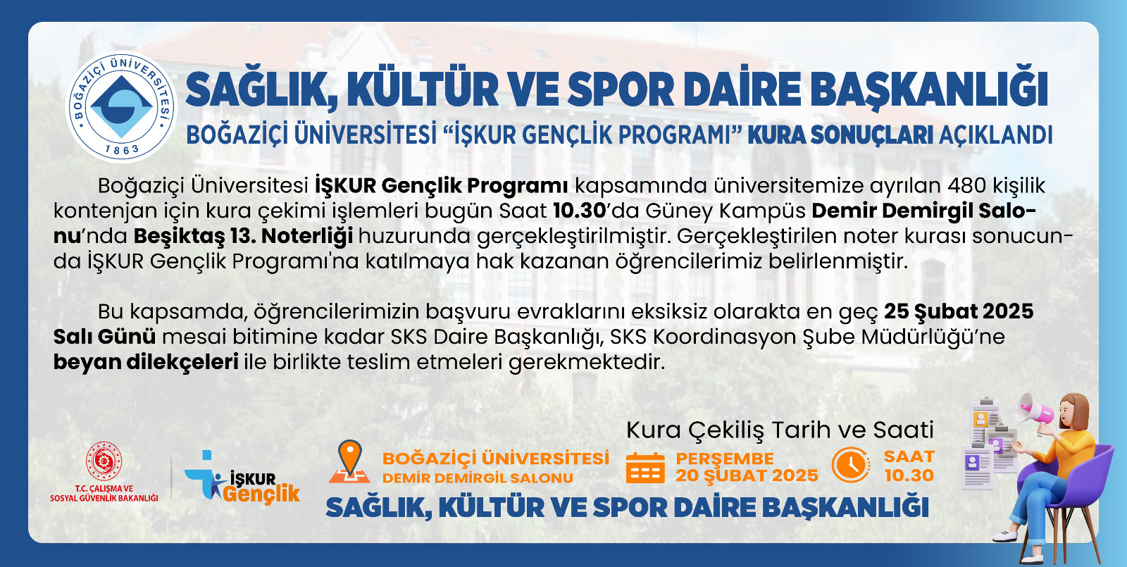BOĞAZİÇİ ÜNİVERSİTESİ İŞKUR GENÇLİK PROGRAMI KURA SONUÇLARI AÇIKLANDI